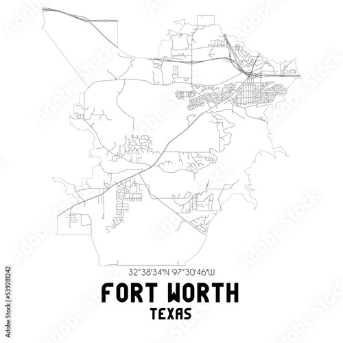 Fototapeta premium Fort Worth Texas. US street map with black and white lines.