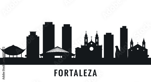 Naklejka premium Fortaleza city skyline silhouette with landmark buildings in black and white