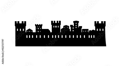 © designknowledge, Fototapeta premium Fortified city wall with cylindrical towers enclosing a historical town, vector illustration art