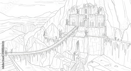 © Burak, Naklejka premium Fortress Carved into a Glacier with Ice Bridges and Frost Guards