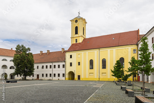 Obraz premium Fortress courtyard with yellow church in Oradea in Romania