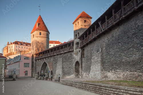 © evannovostro, Fototapeta premium Fortress in old town of Tallinn in the morning