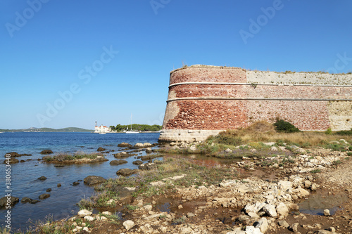 © leomalsam, Fototapeta premium Fortress of St. Nicholas at the entrance to Sibenik Bay, Croatia