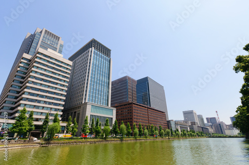© Hirotaka Ihara, Fototapeta premium Fosa pałacu cesarskiego i drapaczy chmur w Tokio, Japonia