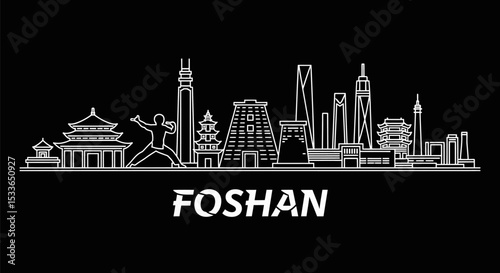 © godsfavoritearts, Fototapeta premium Foshan Skyline Silhouette with China, Cityscape, and Vector.