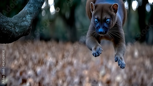 © V.Semeniuk, Obraz premium Fossa Leaps Between Trees in Madagascar During Daytime