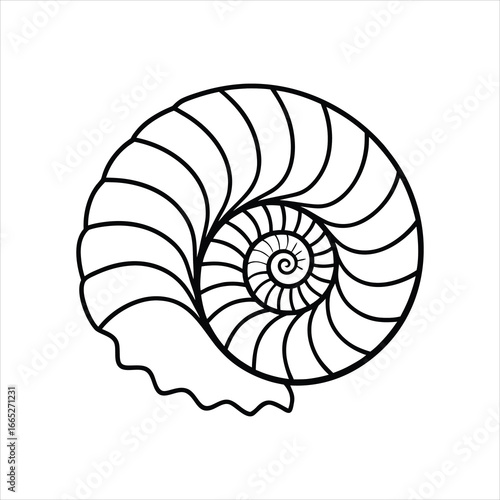 Obraz premium Fossil Spiral Shell Line Art Vector Graphic