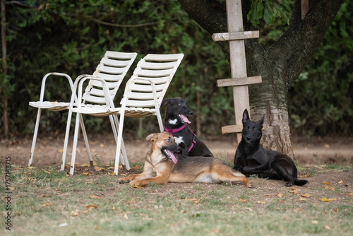 © fotozlatko, Obraz premium Foster dogs siblings playing together at their foster home backyard
