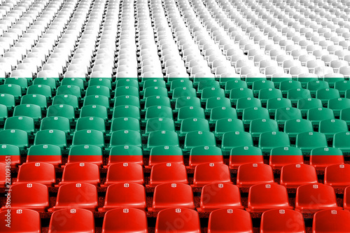 Fototapeta premium Fotele stadionowe z flagą Bułgarii. Koncepcja konkurencji sportowych.