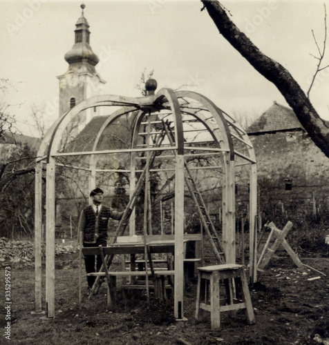 Obraz premium FOTO ANTICA CON STRUTTURA DI LEGNO IN COSTRUZIONE