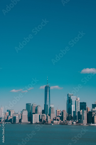 © Raquel, Fototapeta premium Foto de las vistas desde arriba de la Estatua de la Libertad sobre el skyline de Manhattan, Nueva York
