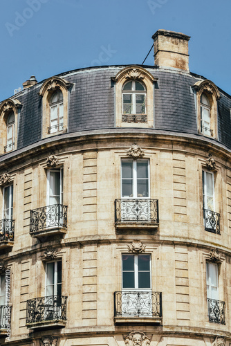 © Raquel, Fototapeta premium Fotografía vertical de un edificio tradicional francés en la ciudad de Burdeos.