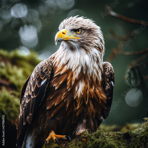 © Iridium Creatives, Obraz premium Fotografia de aguila posada sobre rama con vegetación