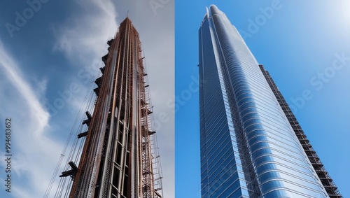 © Mr.Dr , Obraz premium Foundation of Vision, A towering skyscraper in the middle of construction,