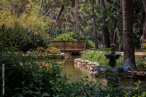 Obraz premium Fountain and Footbridge