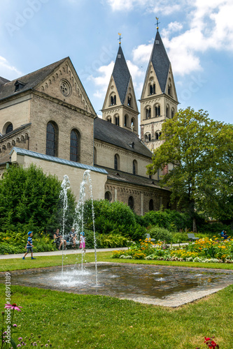 © i_valentin, Fototapeta premium Fountain near the walls of the Basilica of St. Castor in the city of Koblenz