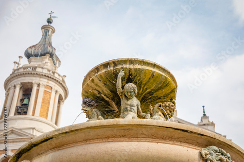 © dtatiana, Fototapeta premium Fountain next to Loreto Basilica della Santa Casa in sunny day in Italy