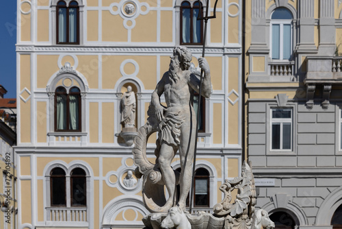 Obraz premium Fountain of Neptune located on Stock Exchange Square (Piazza della Borsa), Trieste, Italy