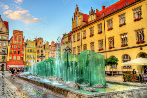 Fototapeta premium Fountain on the Market Square of Wroclaw - Poland