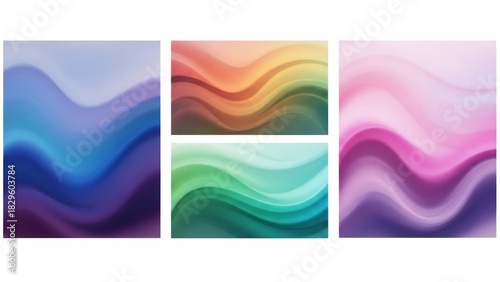© Chandara, Obraz premium Four abstract, colorful, wavy backgrounds with a gradient effect.