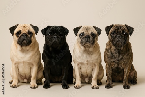 © Rawpixel.com, Fototapeta premium Four adorable pugs sitting together.