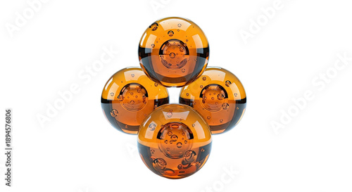 © salsabila, Fototapeta premium Four Amber Glass Spheres with Internal Bubbles on White Background