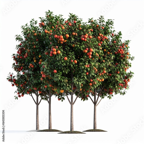 © subhan, Fototapeta premium Four apple trees laden with ripe fruit