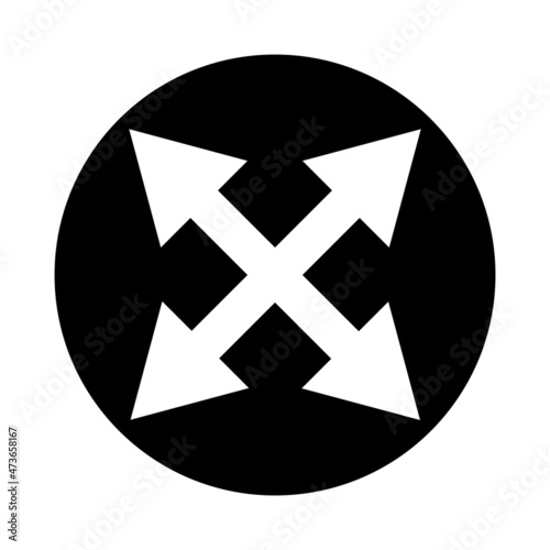 Fototapeta premium Four arrows icon. Black circle. Business background. Navigation app. Mobile design. Vector illustration. Stock image.