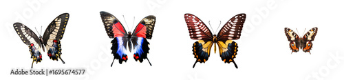 Fototapeta premium Four assorted colorful butterfly wings displayed isolated on transparent...