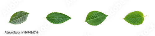 © Maestro, Obraz premium Four assorted green leaves, detailed texture, symmetrical shape, vibrant. cut out transparent
