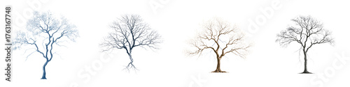 © T Studio, Obraz premium Four Bare Trees in Winter Isolated on White Background