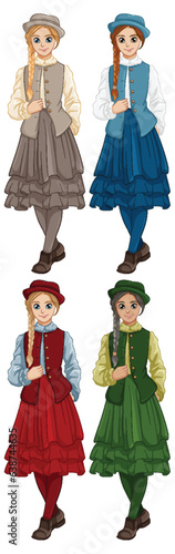 Obraz premium Four Beautiful Women in Vintage Outfits