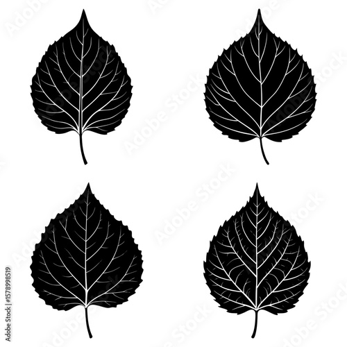 Obraz premium Four black and white leaf illustrations with detailed vein patterns on a...