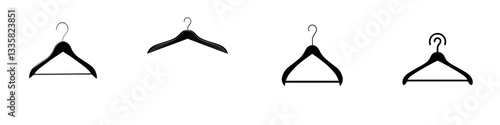 Fototapeta premium Four black clothes hangers on black isolated on white or transparent