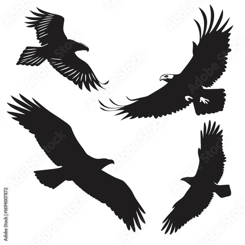 © nalu, Fototapeta premium Four black eagle silhouettes in flight bird flying