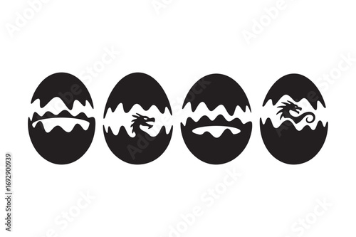 © Sadek, Obraz premium Four black easter eggs with dragon silhouettes inside