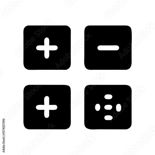 Fototapeta premium Four black square icons featuring plus, minus, and multiplication symbols...