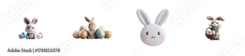 © Maestro, Fototapeta premium Four bunny characters with Easter eggs on black background