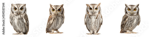 © Naruedetch, Fototapeta premium Four captivating owls with alert expressions and elegant feathers