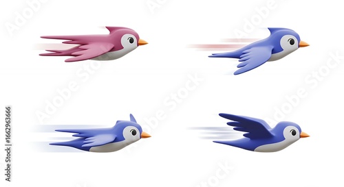 © AGUS, Fototapeta premium Four cartoon birds in flight