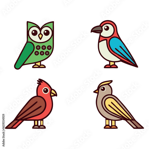 Fototapeta premium Four cartoon birds isolated on white background