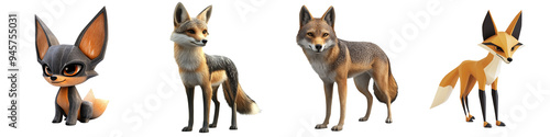 Fototapeta premium Four cartoon foxes with unique styles and expressions, perfect for children's...