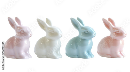 Fototapeta premium Four ceramic rabbits sitting on transparent background