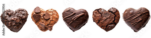 © Duka Mer, Obraz premium Four chocolate heart-shaped cookies isolated on a transparent background, in different styles, showcasing unique patterns and textures.