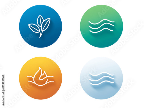 Obraz premium Four Circular Nature Element Icons on Transparent Background, PNG