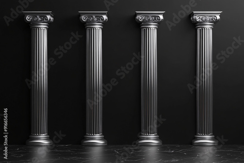 Obraz premium Four classical columns casting shadows against a dark background representing...