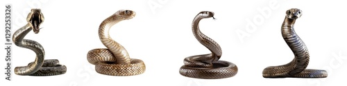 Fototapeta premium Four cobras in defensive poses highlighting their graceful and powerful features