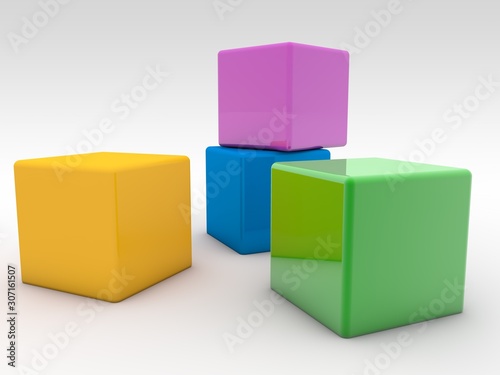 Fototapeta premium Four colored toy cubes on a white background