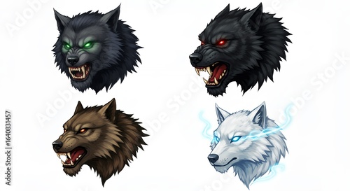 © Mila, Obraz premium Four colored wolf heads illustration