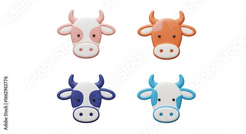 © AGUS, Obraz premium Four colorful cow faces design elements